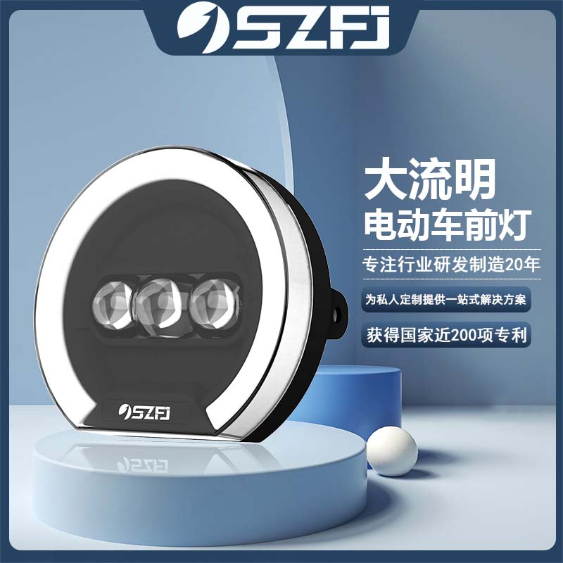 超亮改装三轮车摩托车黑色LED总成大头灯防水大流明48V电动车配件