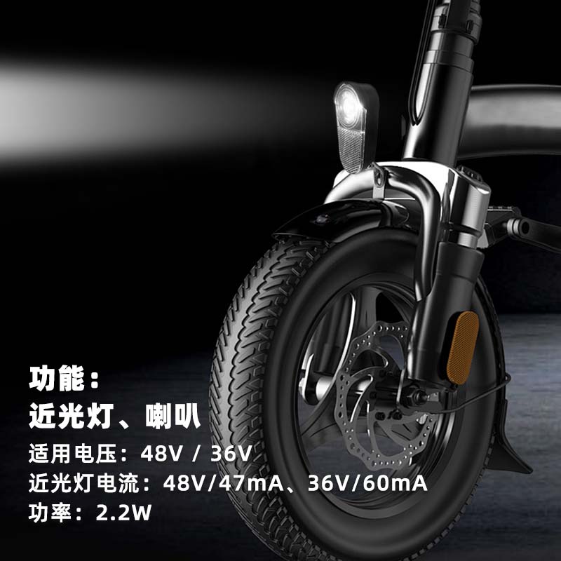 欧盟认证出口电动自行车led车头灯带喇叭前灯48V防水高亮通用射灯