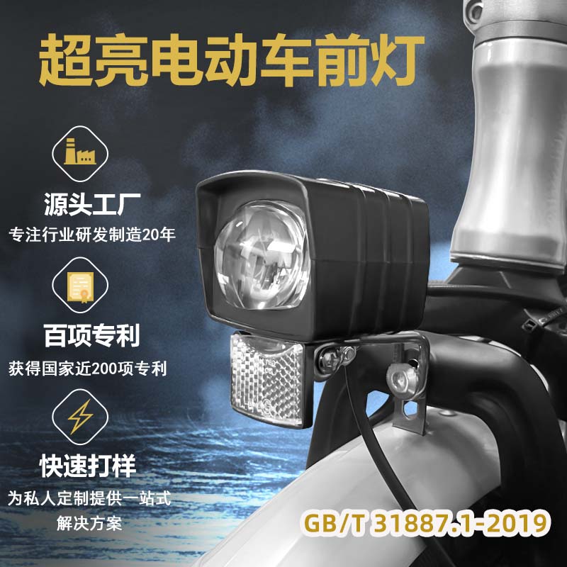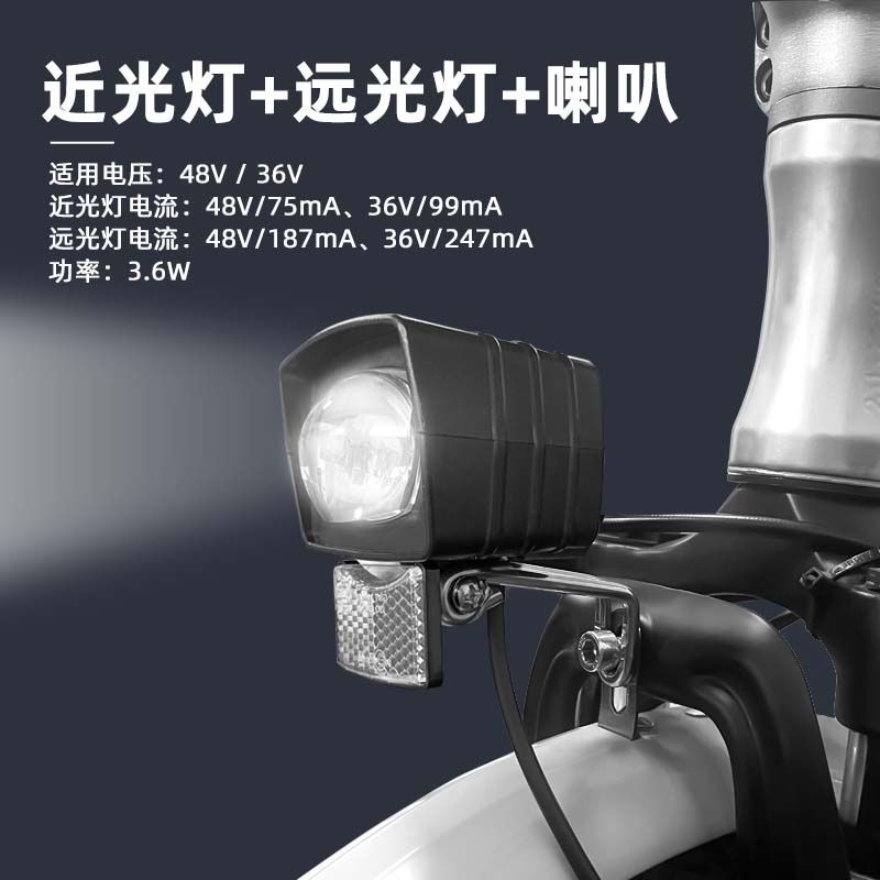 厂家定制户外电动车配件LED车前灯夜骑远射灯 36V48V 通用带喇叭