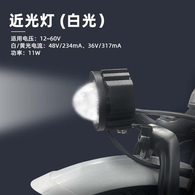 铝合金防水折疊滑板车照明灯双色高亮聚光led透镜喇叭电动车射灯